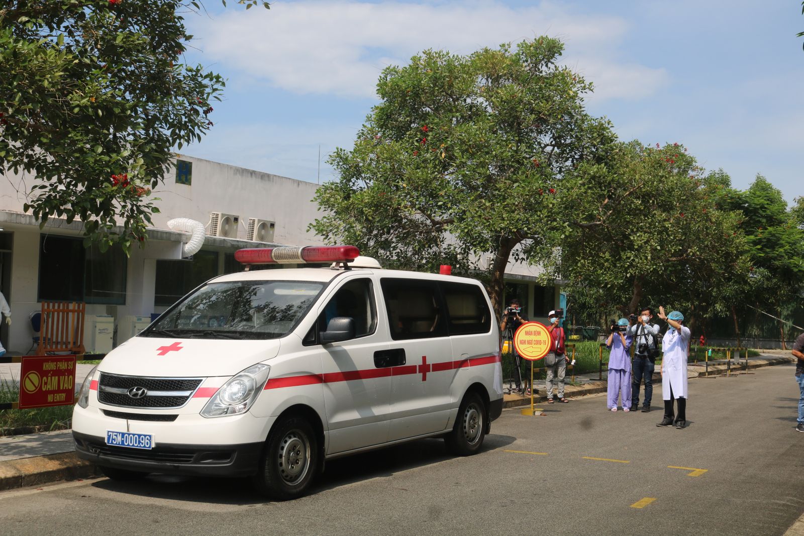 Bệnh nhân chào mọi người khi ra xe