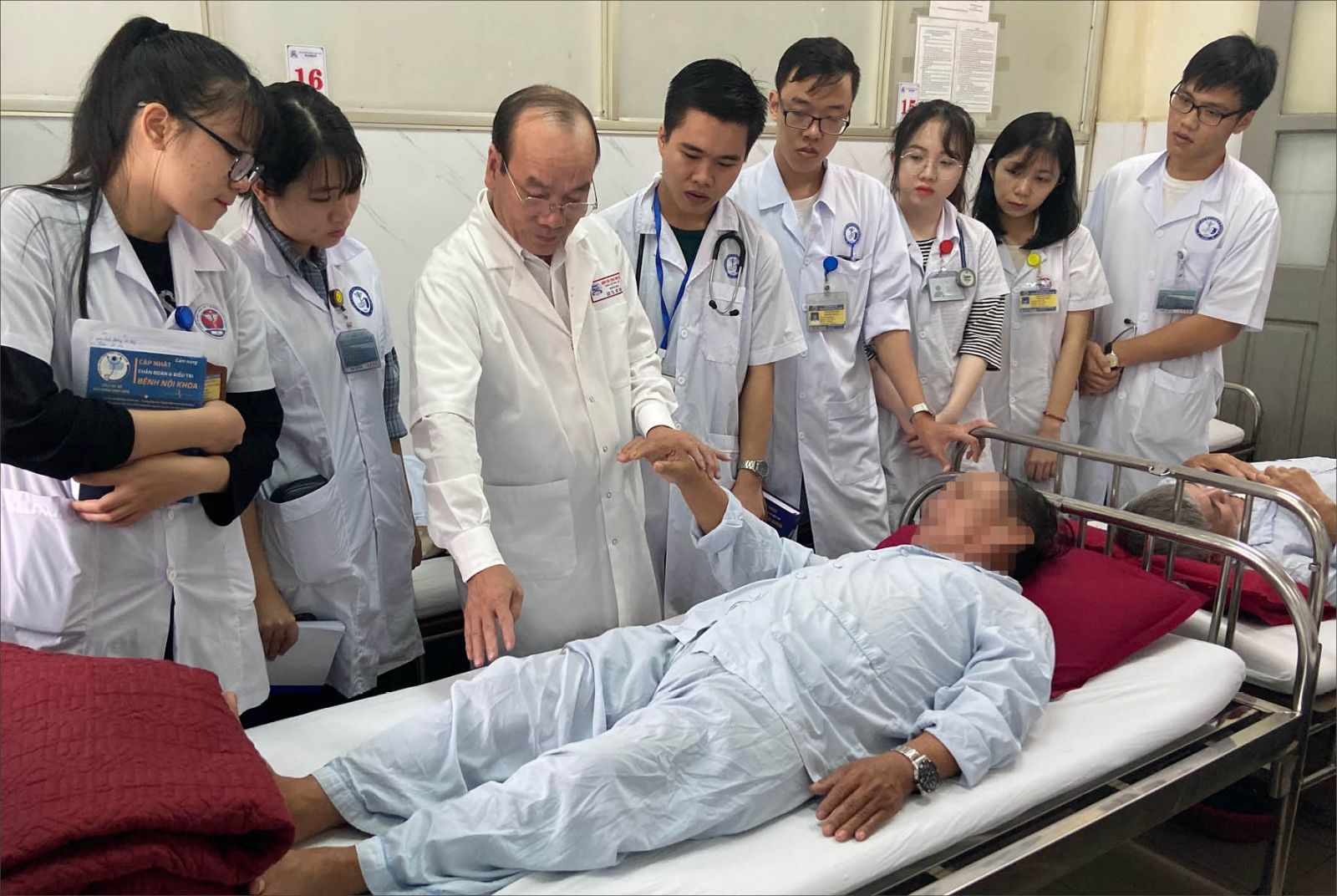 Thầy thuốc Nhân dân, GS.TS.Võ Tam (thứ ba, từ trái sang) khám bệnh cho bệnh nhân
