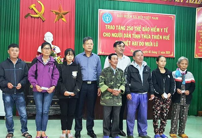 Tặng thẻ BHYT cho người dân vũng lũ ở Thừa Thiên Huế