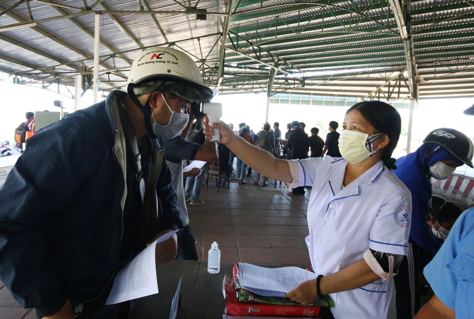 Kiểm tra y tế người từ địa phương có dịch ra Huế tại chốt kiểm soát Lăng Cô