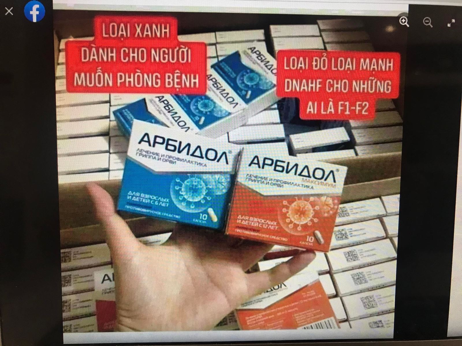 Dạo qua mạng xã hội, không thiếu tài khoản rao bán các loại thuốc này. Một tài khoản facebook có tên T.P.N rao bán công khai đủ loại thuốc xách tay từ Nga về, thậm chí bán theo “combo” như: Thuốc dự phòng virus Arbidol được cho là uống phòng chống khi tiếp xúc với F0, có thể uống trong thời gian điều trị nếu mắc với giá 390.000/hộp; thuốc đặc trị COVID-19 Areplivir giá từ 2,1 triệu đồng/hộp - 2,5 triệu đồng/hộp được cho là đang sử dụng phổ biến tại Nga...
