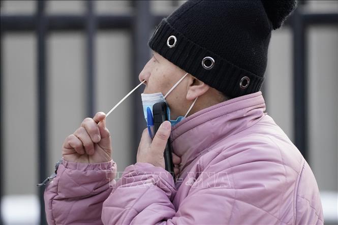Người dân tự lấy mẫu xét nghiệm COVID-19 tại Washington, DC, Mỹ ngày 5/1/2022. Ảnh: THX/TTXVN