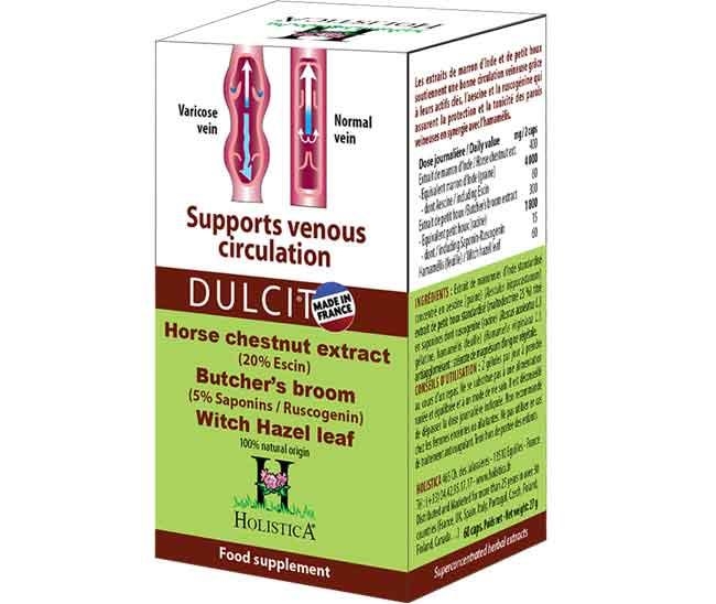 Dulcit là thực phẩm bảo vệ sức khỏe dùng hỗ trợ điều trị giãn tĩnh mạch được nhập khẩu nguyên hộp tại Pháp, sản xuất bởi nhà máy dược phẩm Holistica. Holistica là nhà sản xuất có lịch sử hơn 30 năm, chuyên nghiên cứu phát triển các sản phẩm có nguồn gốc tự nhiên. Với sản phẩm phong phú được tin dùng trên 30 quốc gia và ngày càng được ưa chuộng bởi nét độc đáo từ nguyên liệu, công nghệ hiện đại và tiêu chuẩn cao.
