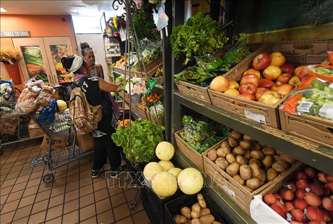 Người dân lựa chọn thực phẩm tại một cửa hàng ở Los Angeles, bang California (Mỹ). Ảnh tư liệu: AFP/TTXVN