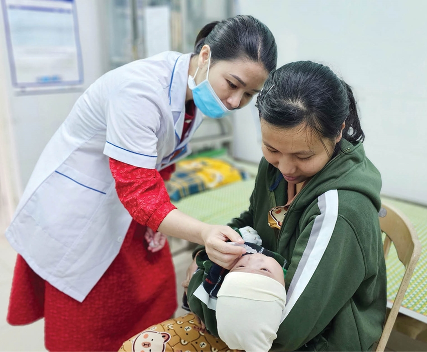 | Cho trẻ uống vắc-xin phòng bệnh do vi rút rota tại trạm y tế |