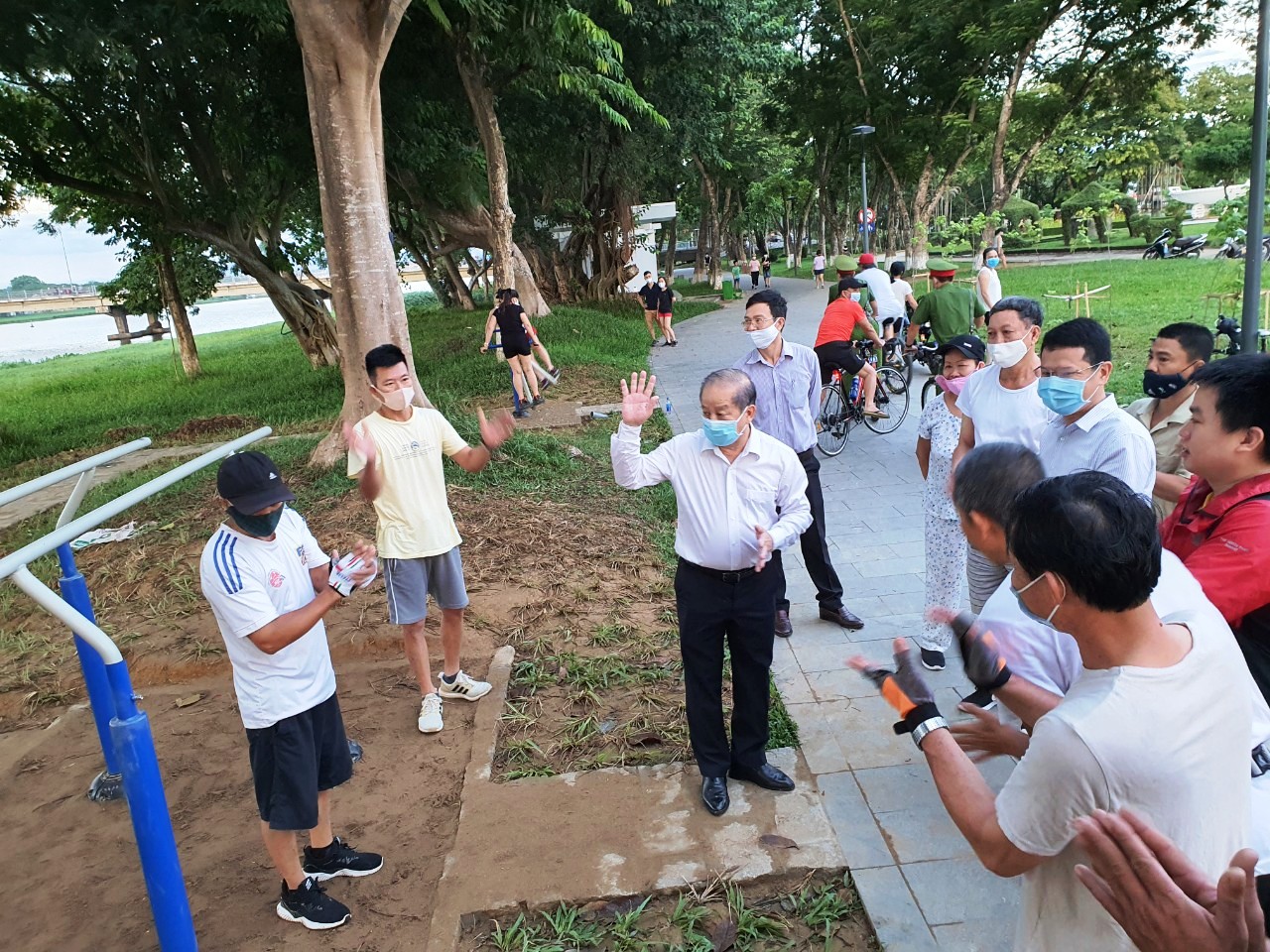 Đi bộ dọc 2 bên bờ sông Hương, chứng kiến các hoạt động thể dục thể thao, vui chơi của người dân tại khuôn viên hai bờ sông Hương, Chủ tịch UBND tỉnh thông tin về tình hình dịch bệnh và các biện pháp phòng chống dịch COVID-19. Theo Chủ tịch UBND tỉnh, mặc dù đến nay trên địa bàn chưa xuất hiện ca bệnh, tuy nhiên diễn biến lây nhiễm ngoài cộng đồng tại một số địa phương khá phức tạp, tiềm ẩn nhiều nguy cơ.