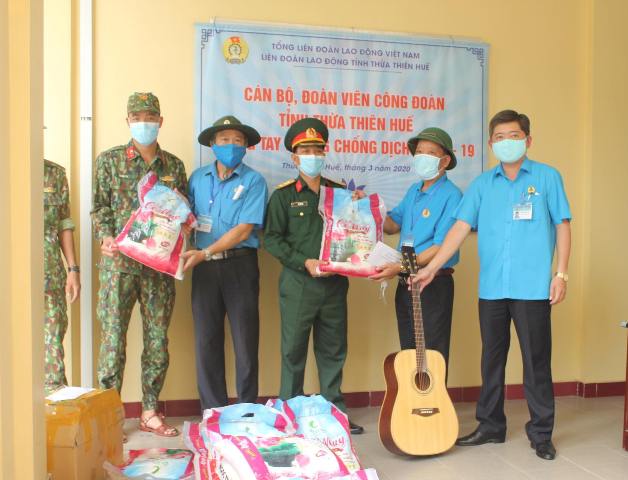 Trong đó, Liên đoàn lao động tỉnh ủng hộ 600 kg gạo, 01 đàn ghi ta; Đoàn Thanh niên Cộng sản Hồ Chí Minh và Chi hội phụ nữ Bộ Chỉ huy quân sự tỉnh ủng hộ 300 chai nước suối, 200 bánh xà phòng; Trường Cao đẳng nghề số 23 - Bộ Quốc phòng ủng hộ 10 triệu đồng… Đặc biệt, có nhiều cá nhân đã tham gia ủng hộ, như: ông Nguyễn Ngọc Lộc, Trung tâm y tế Thị xã Hương Thủy, ủng hộ 100 khẩu trang; chị Vương Thị Nở, phường Thủy Phương, Thị xã Hương Thủy ủng hộ 200 khẩu trang và nhiều cá nhân ủng hộ tiền mặt..