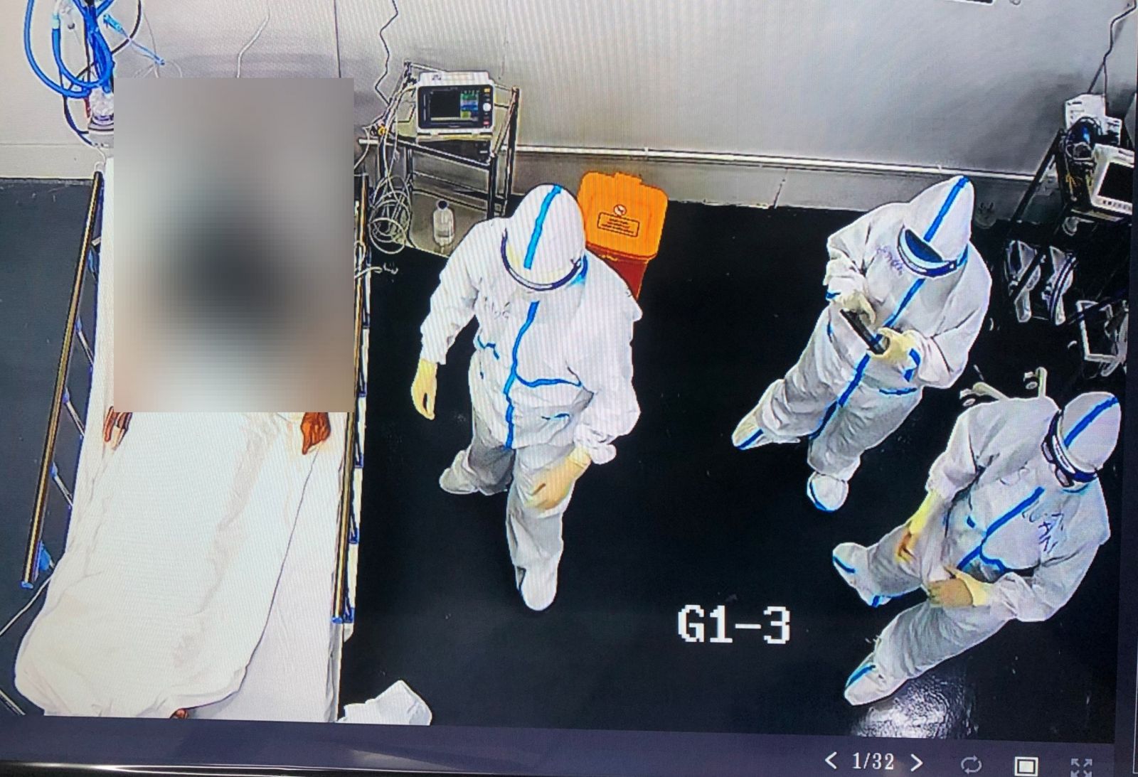 Nhân viên y tế chăm sóc ca bệnh COVID-19. Ảnh chụp qua camera