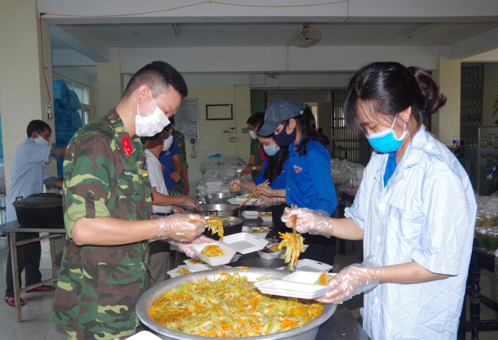 Để có những bữa cơm nóng sốt đưa đến tận tay người dân, những cán bộ, chiến sĩ Bộ CHQS tỉnh đã không ngại thức khuya, dậy sớm. Đây không chỉ là trách nhiệm mà còn là tình cảm quân - dân khi dịch bệnh xảy ra.