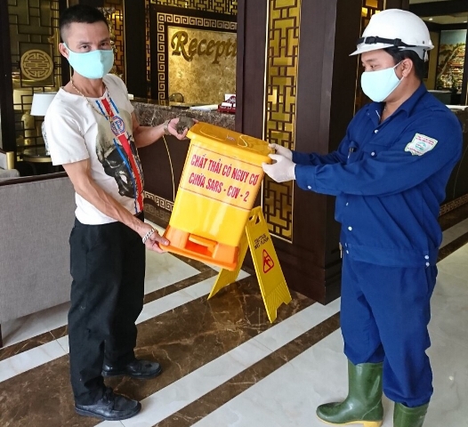Để đảm bảo thuận lợi, an toàn trong việc thải khẩu trang y tế, rác thải nguy hại cũng như phục vụ công tác thu gom, vận chuyển, xử lý rác thải nguy hại, ngày 15/3, Công ty MTĐT tiếp tục đặt thùng rác và thu gom rác y tế tại các điểm có cách ly các trường hợp tiếp xúc với đối tượng đang bị nhiễm COVID-19 (F1).