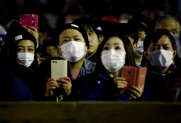 Giữa dịch COVID-19, người dân đeo khẩu trang, xem lễ hội tại đền Saidaiji, Okayama, Nhật Bản ngày 15-2 - Ảnh: REUTERS