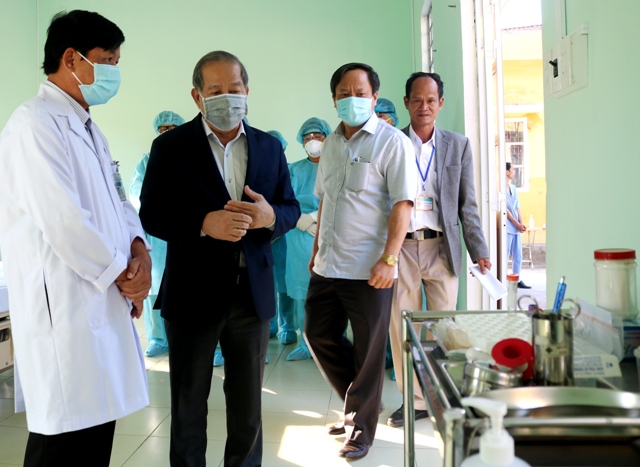 Phó Bí thư Tỉnh ủy, Chủ tịch UBND tỉnh Phan Ngọc Thọ kiểm tra trang thiết bị y tế phục vụ diễn tập