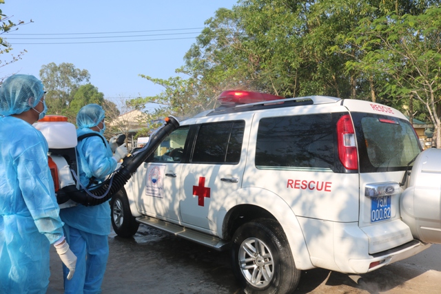 Xe cứu thương được khử trùng trước khi rời khỏi nhà bệnh nhân về khu cách ly