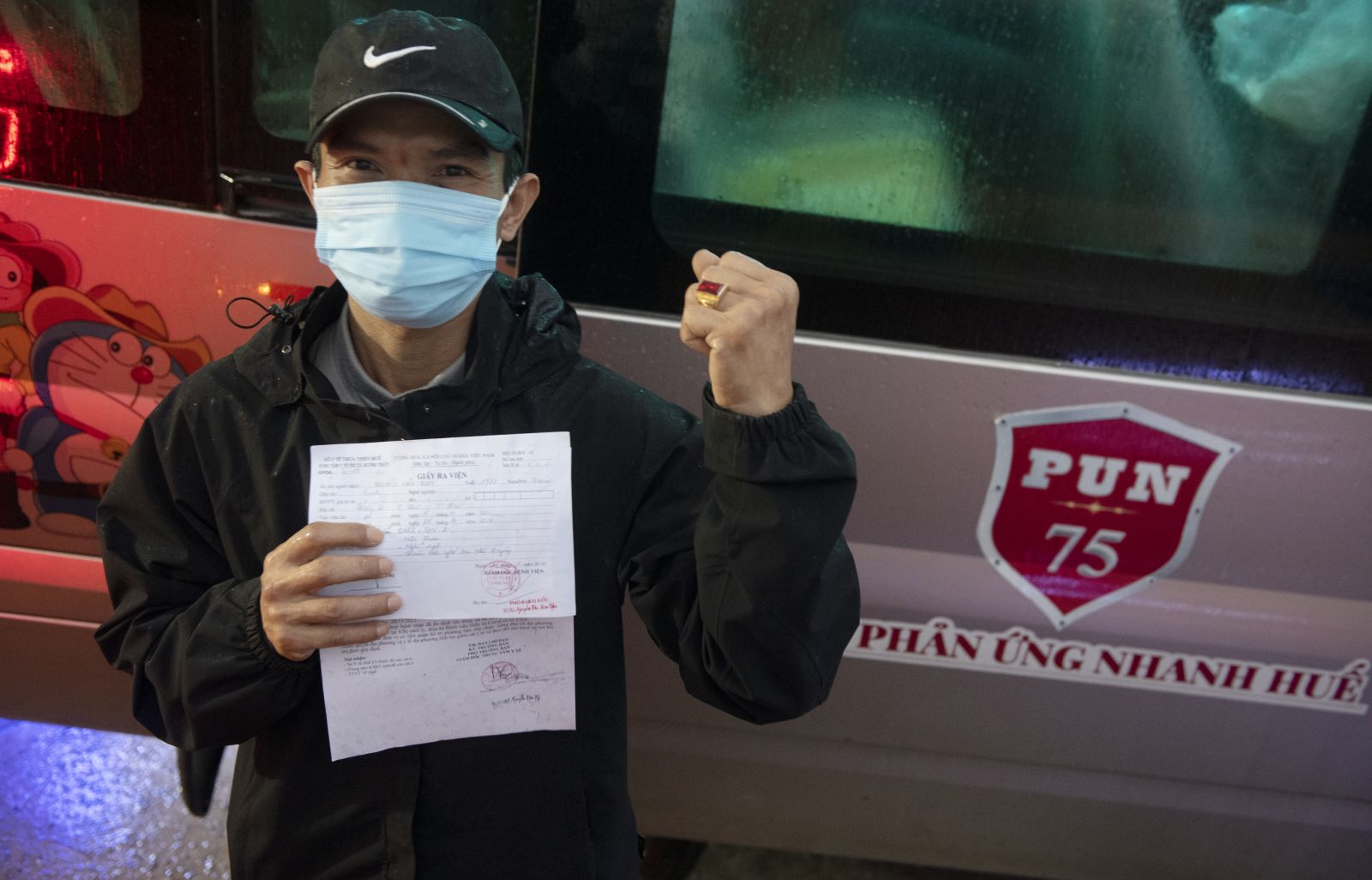 Một ca F0 đã khỏi bệnh được PUN75 đón về nhà ăn tết cùng gia đình. Ảnh: Trương Vững