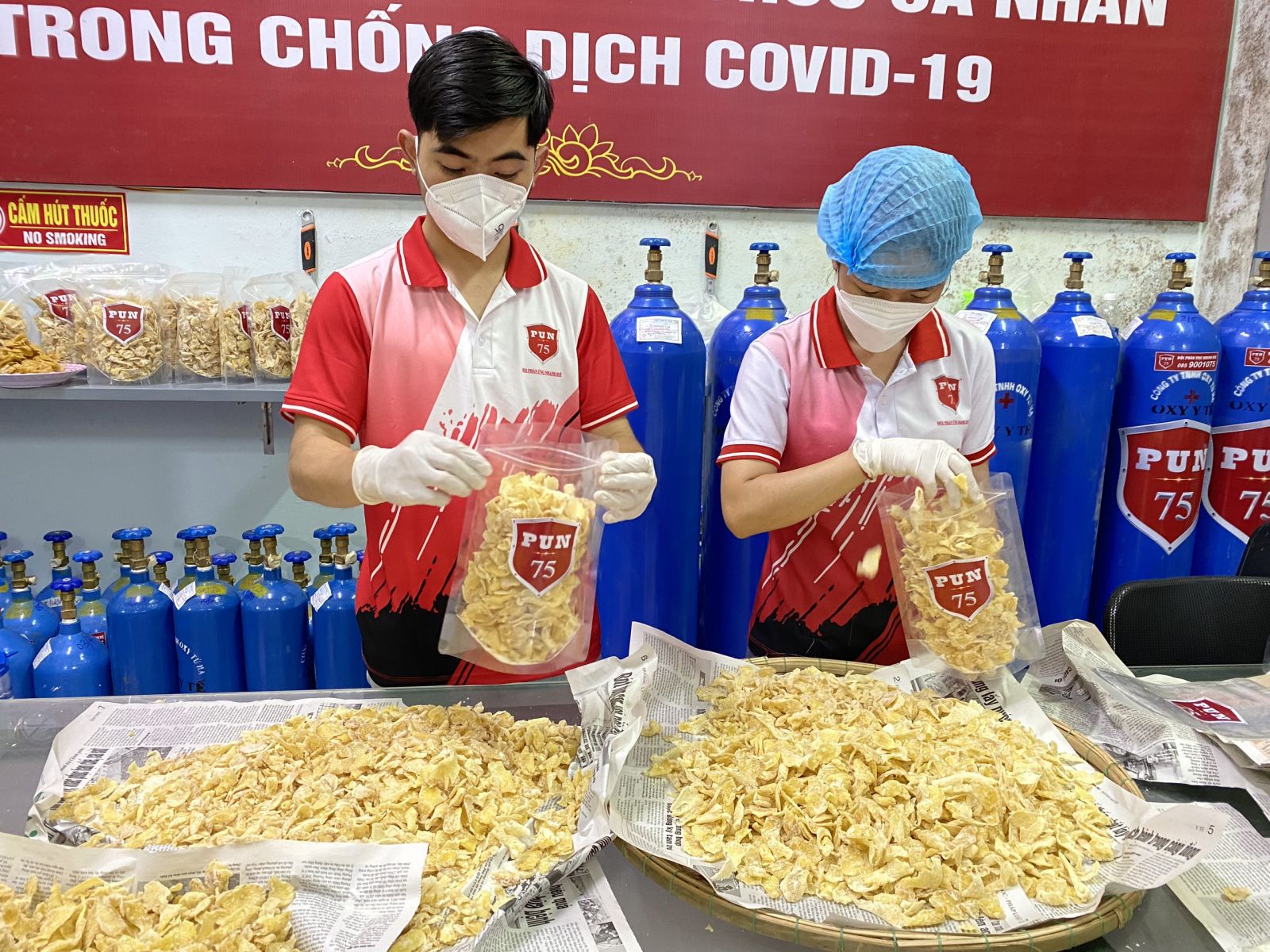 Dù bận rộn, trước tết, các thành viên của Hội PUN75 còn tự tay làm mứt gừng để tặng cho các bệnh nhân F0 tại các khu cách ly. Trần Thị Hoài, 20 tuổi, cho biết, mặc dù gần tết gia đình nhiều việc nhưng em vẫn sắp xếp thời gian cùng PUN75 làm mứt gừng tặng quà tết cho các bệnh nhân F0. Đây là việc làm ý nghĩa nên dù có vất vả, em vẫn cảm thấy rất vui khi được góp một phần công sức nhỏ vào việc đẩy lùi dịch COVID-19.