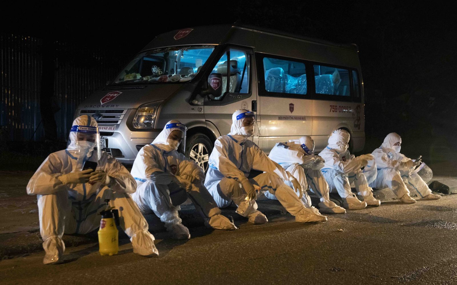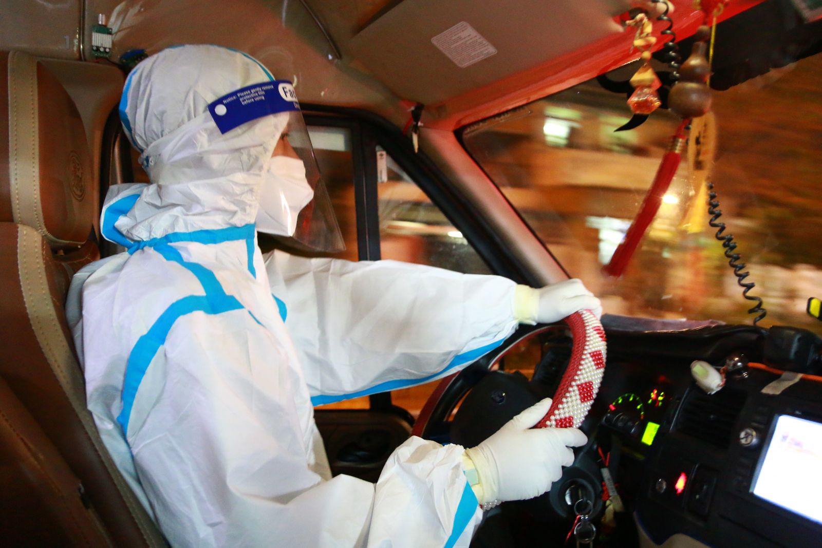 “Tình trạng bệnh nhân bên đó sao rồi, bao nhiêu tuổi…?”, anh Lê Văn Huế (29 tuổi, TP.Huế) trao đổi qua điện thoại với một nhân viên y tế, vừa thay áo quần bảo hộ, nhanh chóng lên đường đón 4 ca F0 vào lúc 21 giờ đêm mùng 1 Tết, từ các trạm y tế Thuận Hoà, Gia Hội, Phú Thượng về khu cách ly khung T4 - Phạm Văn Đồng, TP. Huế.