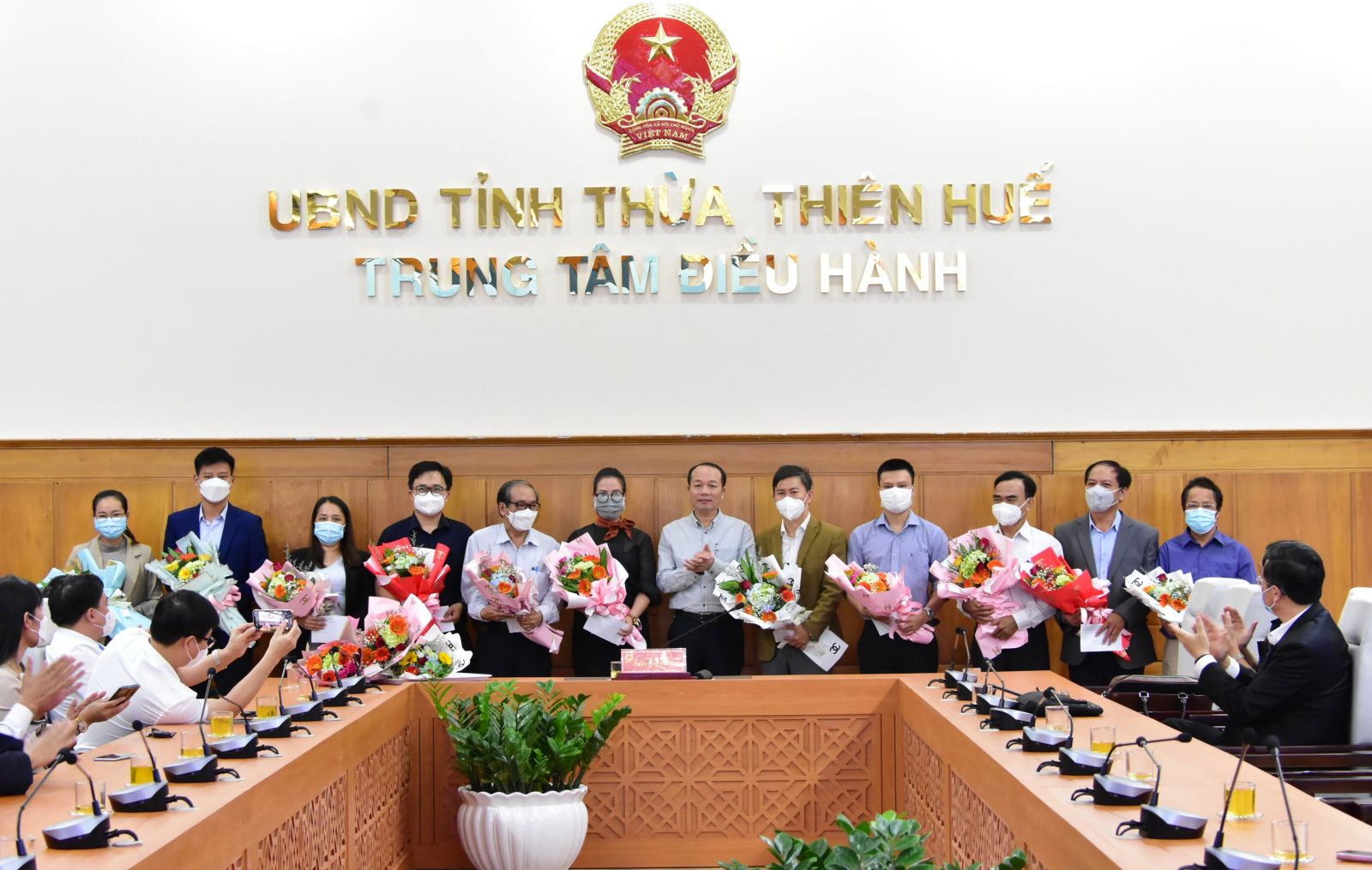Tại điểm cầu tỉnh Thừa Thiên Huế, Phó Chủ tịch UBND tỉnh Phan Quý Phương đã tặng những bó hoa tươi thắm cùng những lời chúc và lời cám ơn chân thành đến lực lượng y tế tuyến đầu trong công tác phòng chống dịch COVID-19. Giám đốc Bệnh viện Trung Ương Huế - Phạm Như Hiệp và Phó Giám đốc Bệnh viện trung ương Huế - Nguyễn Thanh Xuân đã được Thủ tướng biểu dương, khen thưởng.