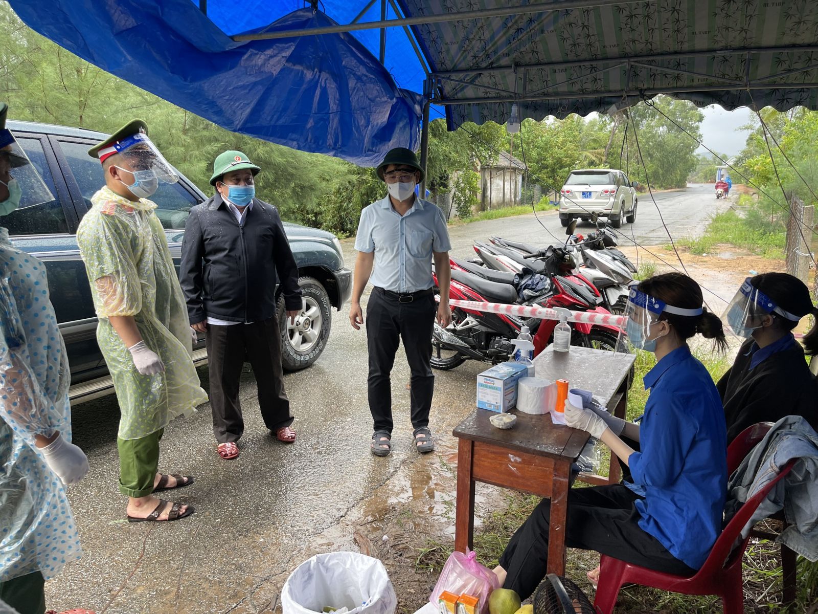 Phó Chủ tịch UBND tỉnh Nguyễn Thanh Bình kiểm tra công tác phòng chống dịch kết hợp phòng chống lụt bão ở Vinh Hiền, Phú Lộc ngày 11/9