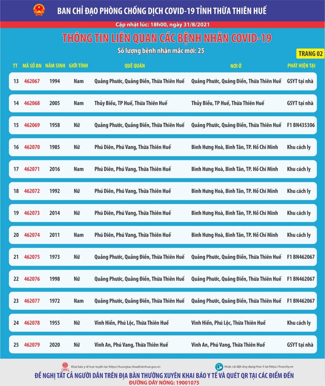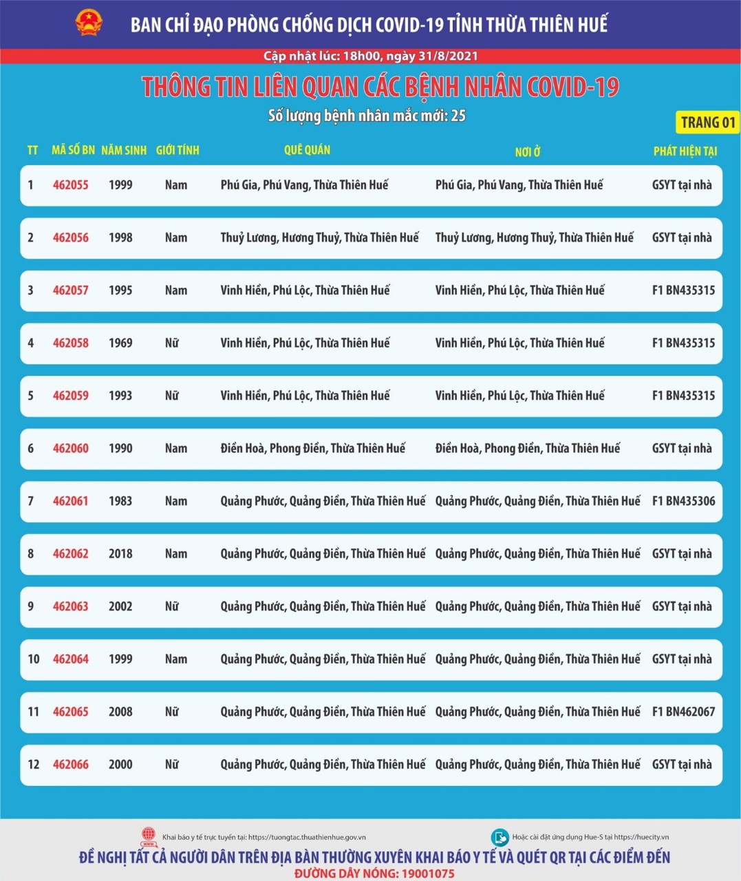 Trong số 25 ca mới phát hiện, đáng chú ý là 12 ca xuất hiện trong khu vực phong tỏa theo Chỉ thị 16 tại Quảng Điền và Phú Lộc.