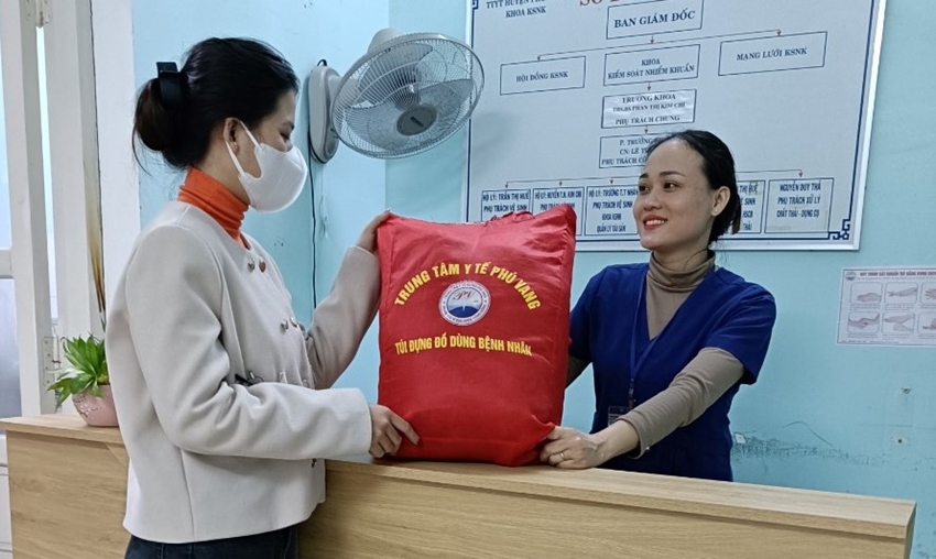 | Trao túi đồ dùng cho bệnh nhân nội trú tại TTYT Phú Vang |