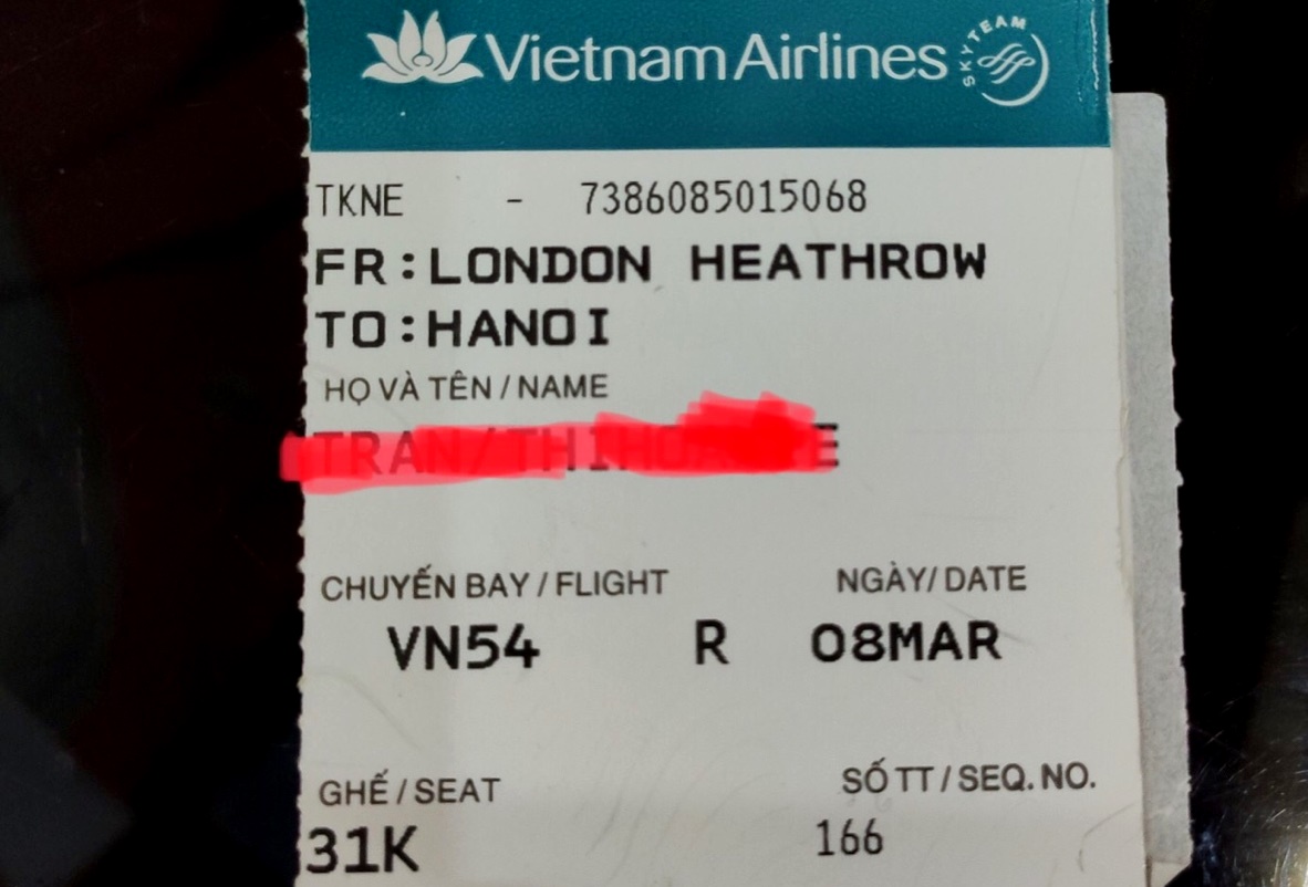 Bà T.T.H.K. (sinh năm 1962, trú tại P. Thủy Dương - TX. Hương Thủy) là người có mặt trên chuyến bay VN54 của hãng hàng không Vietnam Airlines từ London (Anh) về Việt Nam, khởi hành ngày 8/3 và đáp xuống sân bay Nội Bài (Hà Nội) tầm 5h30 ngày 9/3.