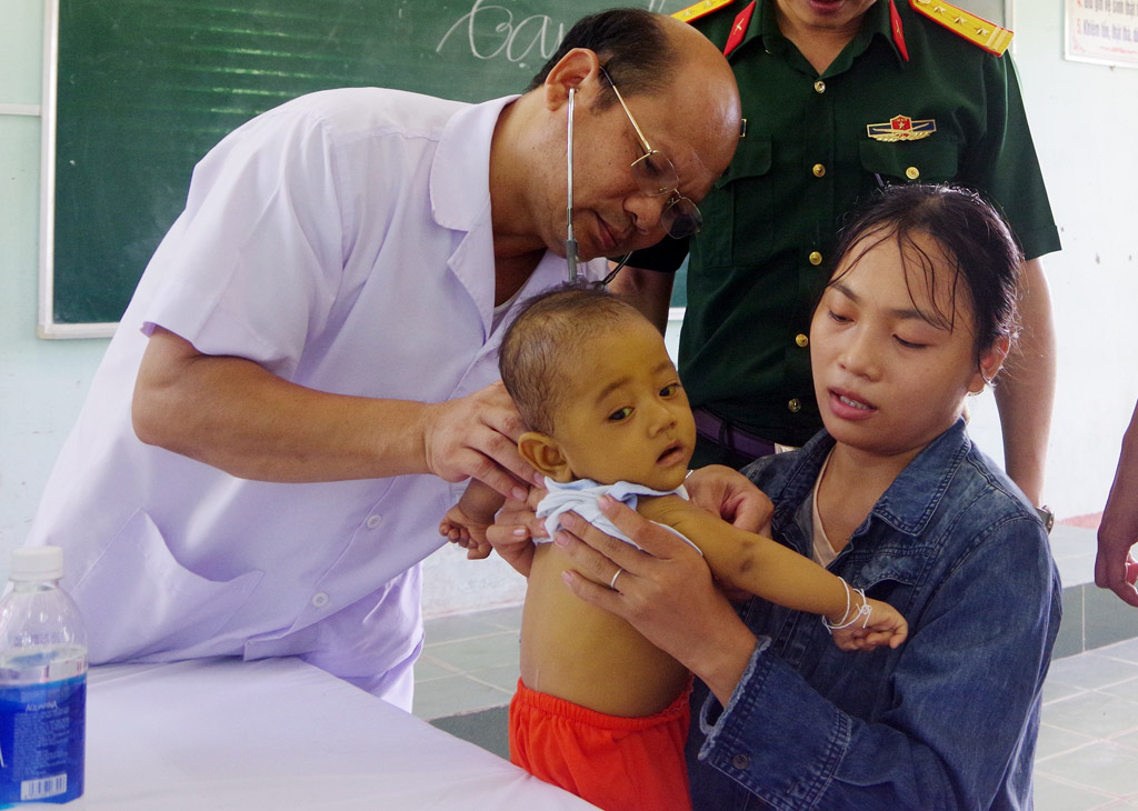 Đoàn đã thăm khám tổng quan, xét nghiệm máu, siêu âm bụng, khám chuyên khoa tai, mũi, họng, mắt, kiểm tra huyết áp, các bệnh ngoài da; đồng thời, tư vấn sức khỏe, phương pháp phòng, chống dịch bệnh, tư vấn rèn luyện thể dục thể thao, hướng dẫn cách vệ sinh cá nhân hàng ngày.