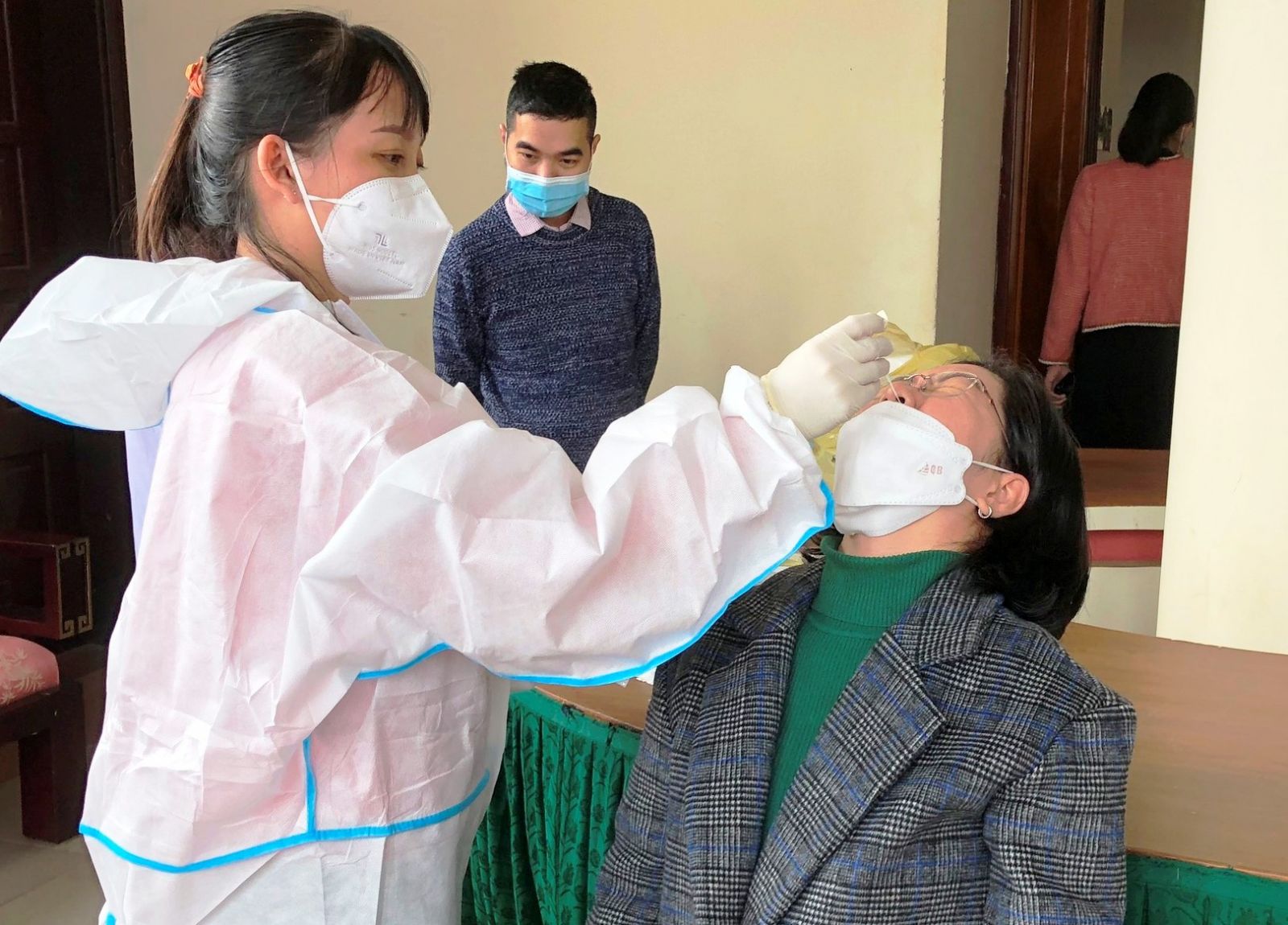 Nhân viên CDC lấy mẫu test nhanh cho cán bộ công nhân viên chức thuộc Văn phòng UBND tỉnh