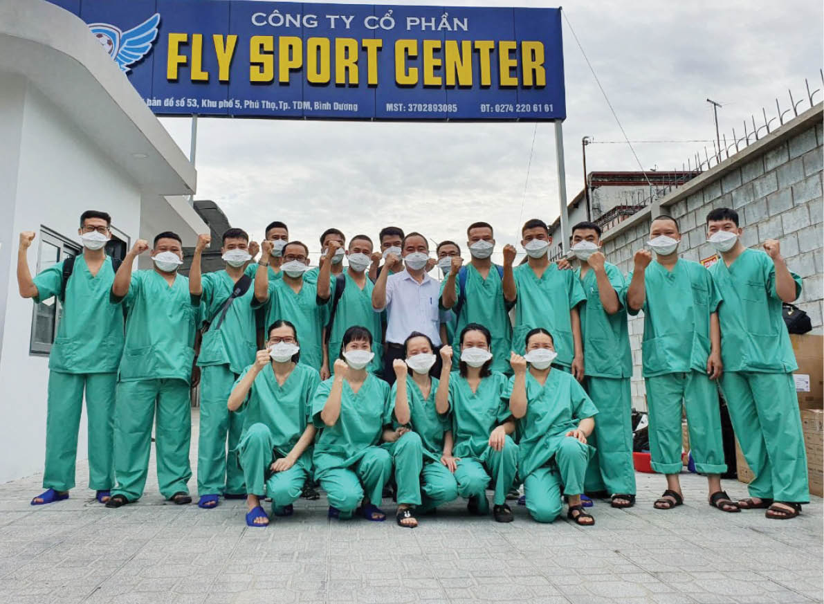 Xe đưa đón đoàn về sân bóng của cầu thủ Anh Đức, đây là nơi đoàn sẽ ở lại trong suốt quá trình tham gia chống dịch tại Bình Dương. Đến nơi đã thấy các tình nguyện viên xông xáo giúp đỡ, chuyển hàng viện trợ của đoàn đến giúp chống dịch, chuyển hành lý của đoàn mang theo trong chuyến hành trình này. Ai ai cũng rất thân thiện, hòa đồng. Đoàn chúng tôi ngay từ lúc đầu đã thấy mến người Bình Dương.