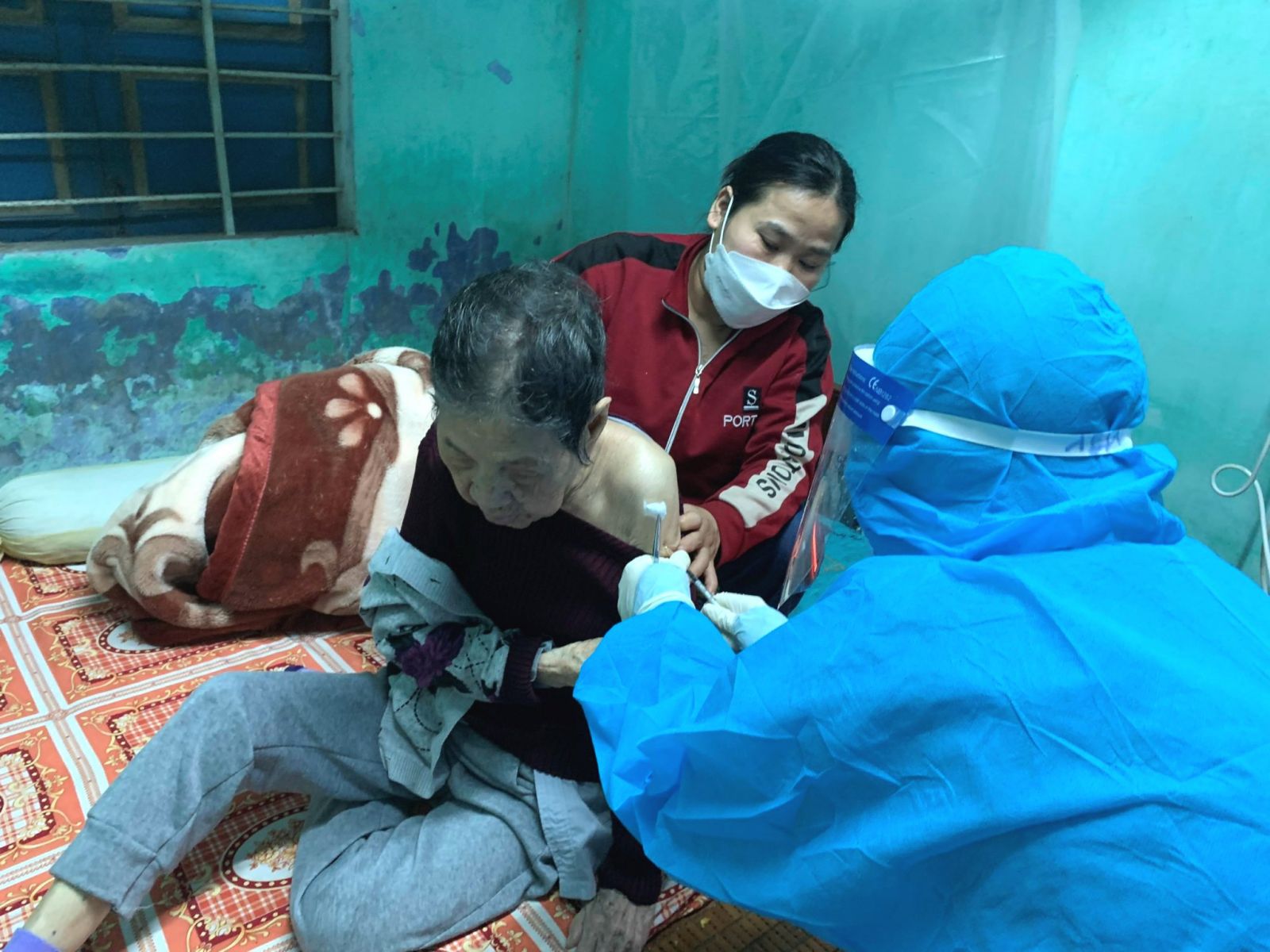 Tiêm vaccine phòng COVID-19 tại nhà cho người cao tuổi gặp khó khăn trong đi lại ở TP. Huế. Ảnh: Th. Anh