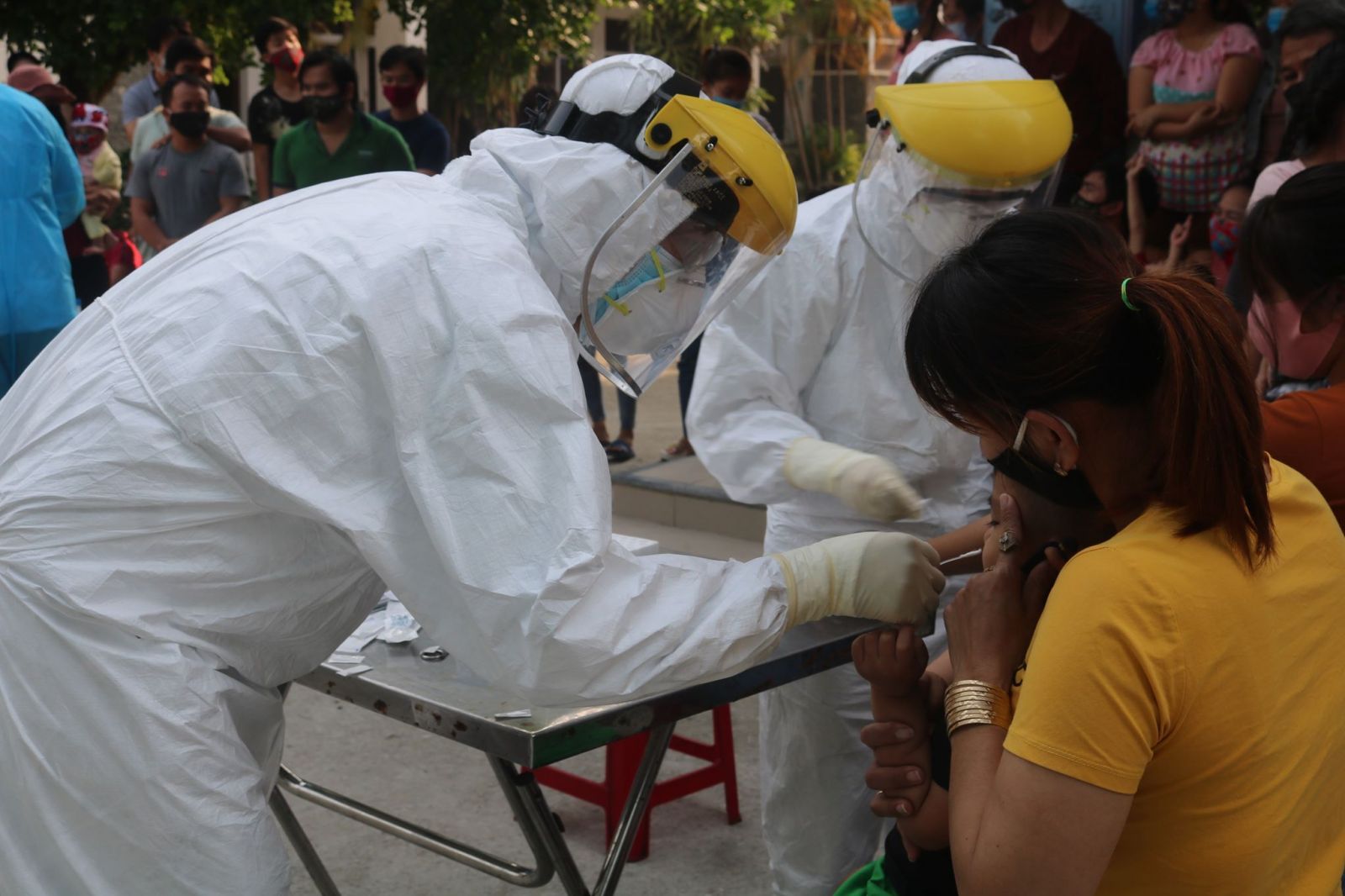 Lấy mẫu xét nghiệm PCR. Ảnh: Thu Thủy