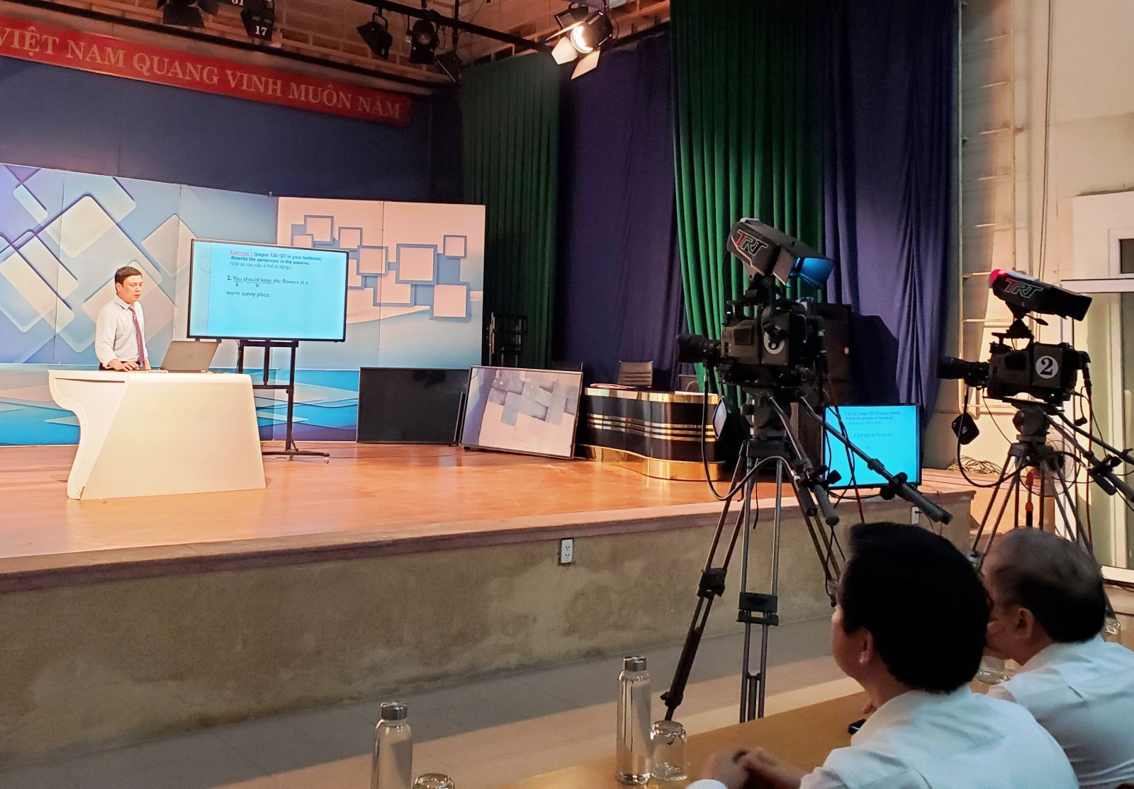 Buổi ghi hình dạy học trực tuyến môn ngoại ngữ tại Đài phát thanh và truyền hình tỉnh