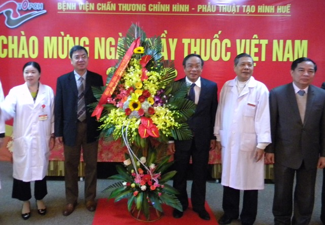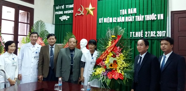 Dip này, Chủ tịch UBND tỉnh đến thăm, tặng hoa chúc mừng các cơ sở y tế: Bệnh viện Thành phố Huế; Trung tâm Giám định Tâm thần tỉnh; Bệnh viện Chấn thương Chỉnh hình- Phẫu thuật tạo hình tỉnh; Bệnh viện Mắt Huế. Tại đây, Chủ tịch UBND tỉnh biểu dương những kết quả của các đơn vị đã đạt được trong thời gian qua; đồng thời, đề nghị lãnh đạo, cán bộ, công nhân viên các đơn vị tiếp tục trau dồi y đức, đoàn kết, đồng sức đồng lòng tiếp tục cải tiến các hoạt động nâng cao chất lượng khám chữa bệnh, đáp ứng yêu cầu CSSK ngày càng cao của người dân...