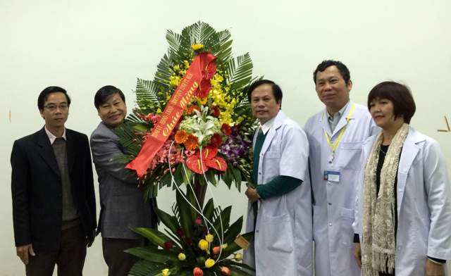 Chủ tịch UBND tỉnh Nguyễn Văn Cao (thứ 3 từ phải sang) thăm, tặng hoa chúc mừng tập thể cán bộ Bệnh viện Chấn thương chỉnh hình-Phẫu thuật tạo hình tỉnh
