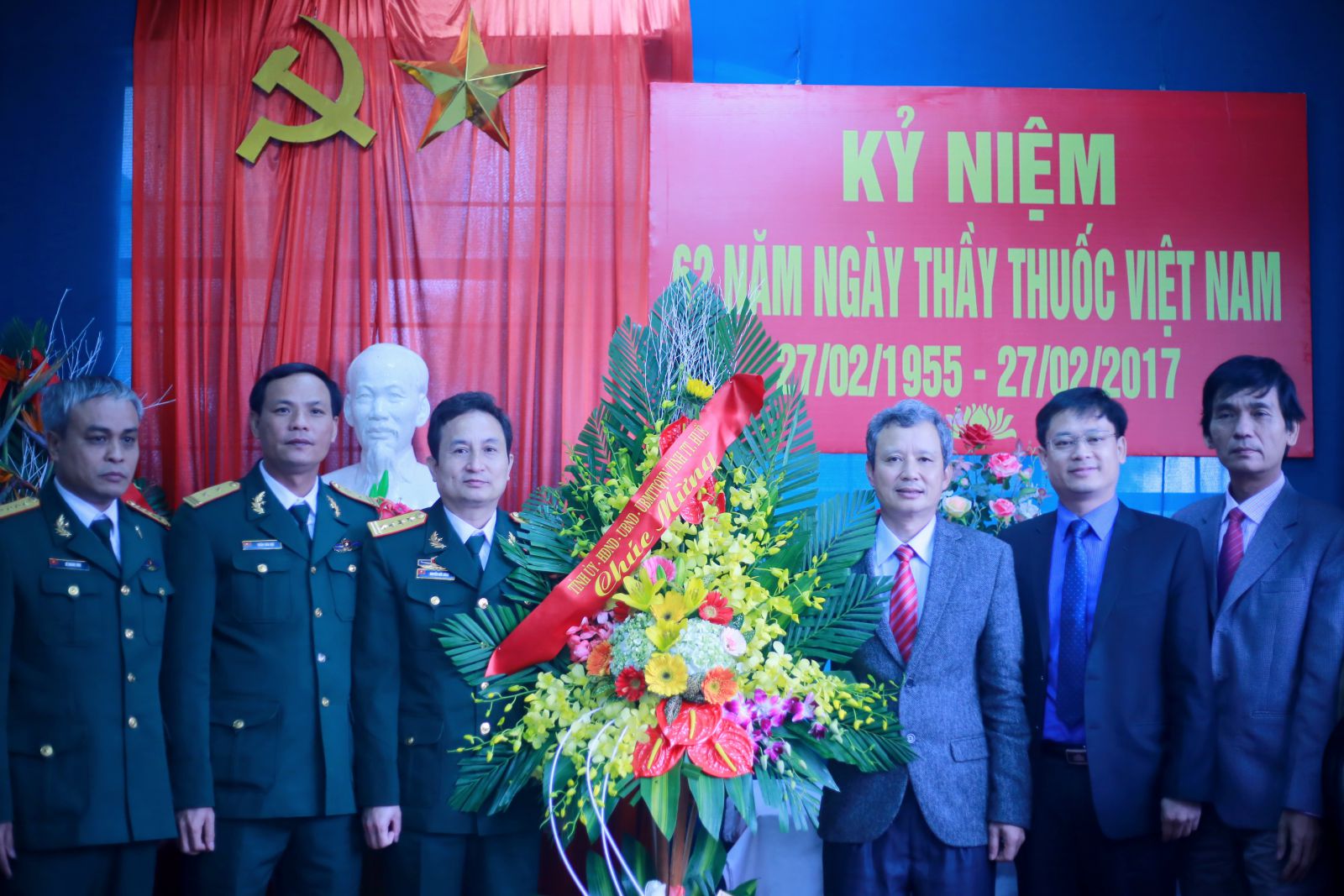 Bí thư Tỉnh ủy Lê Trường Lưu (thứ 3, phải qua) tặng hoa chúc mừng tập thể Bệnh viện Quân y 268