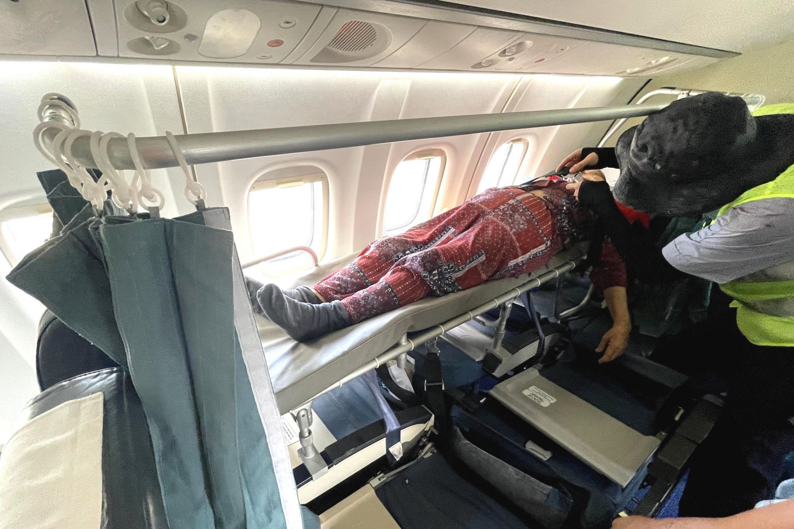 Các kỹ sư đã lắp đặt cáng trên tàu bay để phục vụ riêng hành khách đặc biệt này. Một chiếc cáng lắp trên tàu bay sẽ sử dụng vị trí của 6 chiếc ghế. Theo hướng dẫn của nhà sản xuất tàu bay, cáng kèm theo rèm che được lắp đặt tại khu vực đuôi máy bay, vị trí tốt nhất trên tàu ATR72 để tạo không gian dễ chịu nhất cho người nằm cáng.