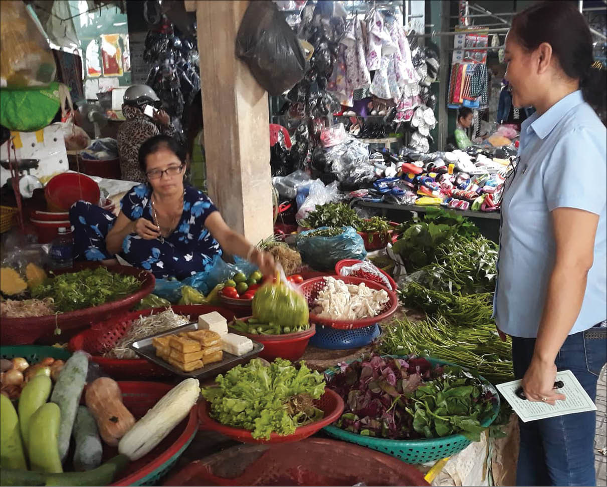Nhân viên BHXH huyện Phong Điền vận động tiểu thương chợ Phò Trạch tham gia BHXH tự nguyện