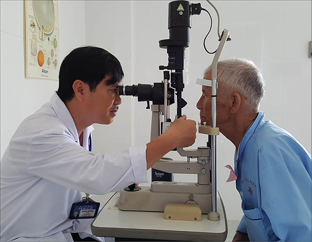 Cụ Phạm Tự được kiểm tra lại mắt sau phẫu thuật đục thủy tinh thể