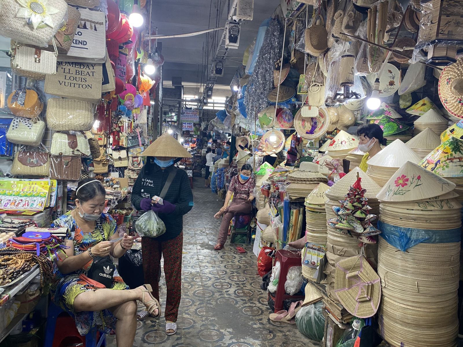 Đeo khẩu trang mua bán, giao dịch tại chợ Đông Ba