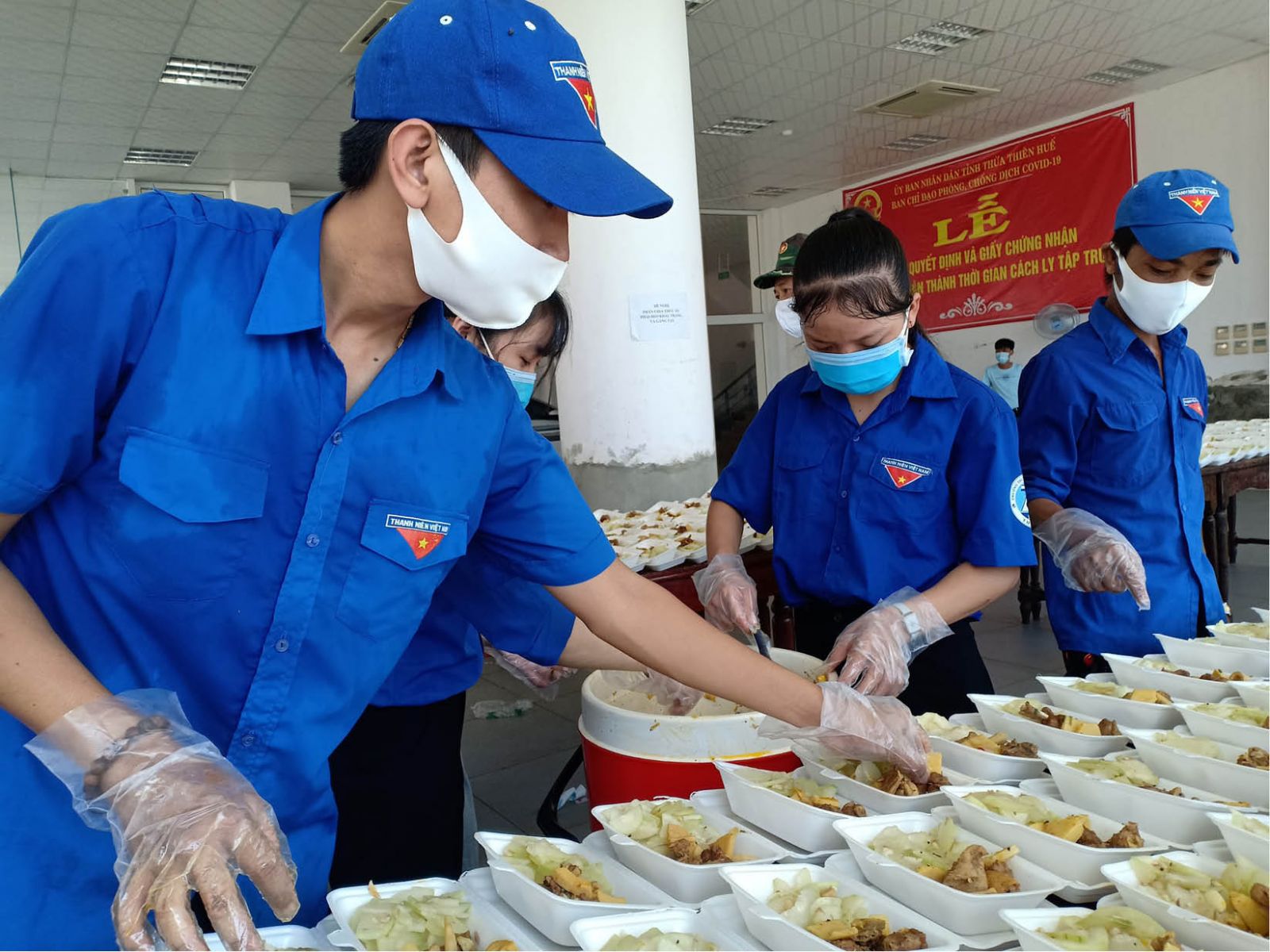 Lực lượng đoàn viên thanh niên Huyện đoàn Phú Vang hỗ trợ phục vụ công tác hậu cần tại các khu cách ly y tế của tỉnh đóng trên địa bàn huyện
