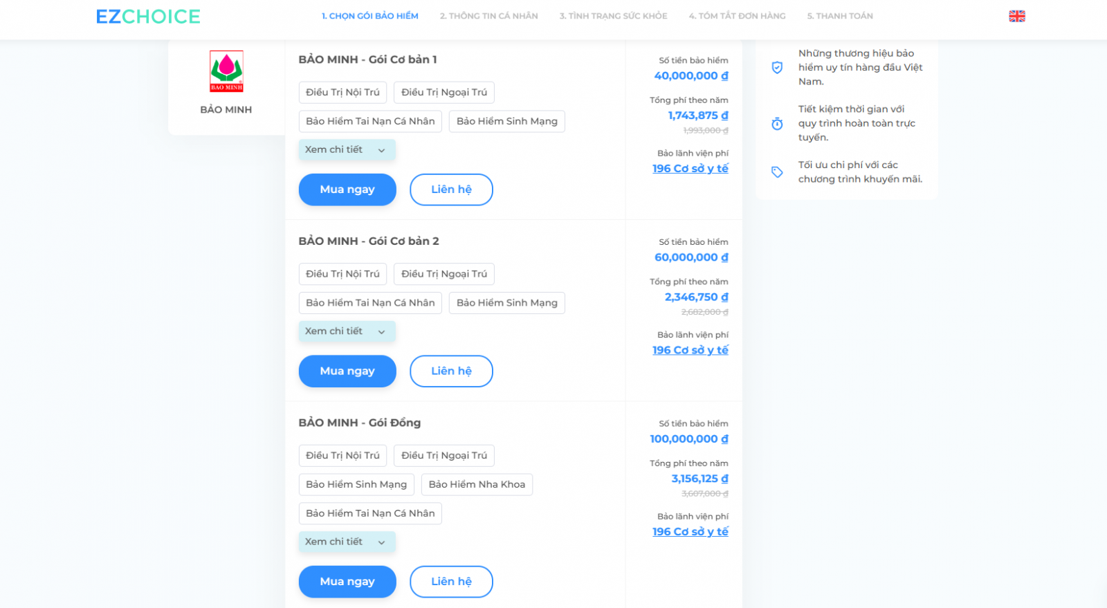 Dễ dàng so sánh các gói bảo hiểm sức khỏe tốt nhất trên EZChoice