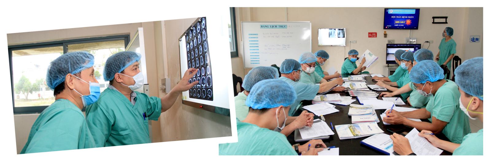 Cùng với 3 tổ chỉ đạo phòng chống COVD-19, 41 đội phản ứng nhanh và các bệnh viện dã chiến được thành lập, toàn bộ nhân lực ngành y được huy động cho cuộc chiến chống dịch. Cái khó trong điều trị COVID-19 đối với các cơ sở tuyến dưới là chưa có nhiều kinh nghiệm trong kiểm soát nhiễm khuẩn dịch bệnh nhóm A (COVID-19 được xếp vào dịch bệnh nhóm A). Trước tình hình đó, Bệnh viện Trung ương Huế đã chủ động tổ chức các đợt tập huấn kiểm soát nhiễm khuẩn trực tiếp và trực tuyến.