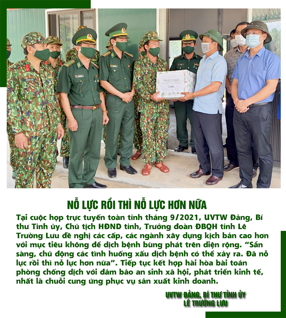 Theo đánh giá từ Ban chỉ đạo phòng chống dịch COVID-19 tỉnh, kiểm soát dịch hiệu quả còn nhờ phát huy vai trò chủ động của chính quyền địa phương và tinh thần chịu trách nhiệm của những người đứng đầu. “Tỉnh chỉ đạo các cơ quan ban ngành từng lĩnh vực một xây dựng kịch bản cụ thể. Đặc biệt là giao trách nhiệm cho các địa phương xây dựng phương án chủ động. Bí thư, Chủ tịch là “tư lệnh vùng” chịu trách nhiệm giám sát, triển khai các biện pháp theo kịch bản đã xây dựng, đảm bảo một hệ thống chống dịch xuyên suốt từ trên xuống dưới”, Phó Chủ tịch UBND tỉnh Nguyễn Thanh Bình nhấn mạnh.