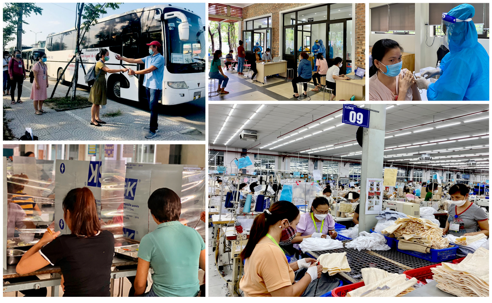 Tại Công ty cổ phần SCAVI – công ty may quy mô lớn ở Thừa Thiên Huế, ông Hồ Phan Minh Đức, Trưởng ban Kiểm soát phòng, chống dịch COVID-19, quá trình vận hành, sản xuất của nhà máy đảm các yếu tố giãn cách, tách biệt. Công nhân đi làm bằng xe buýt riêng, sản xuất riêng, ăn cơm riêng; sẵn sàng phương án sản xuất “3 tại chỗ” (sản xuất tại chỗ, ăn uống tại chỗ và nghỉ ngơi tại chỗ) kết hợp “1 cung đường, 2 địa điểm”.