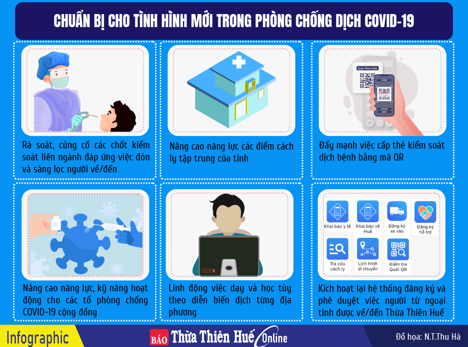 Từ 30/9 trở đi, công tác phòng chống dịch trong cả nước sẽ có thay đổi, Ban Chỉ đạo phòng, chống dịch COVID-19 tỉnh yêu cầu các ngành, các địa phương sẵn sàng phương án căn cơ để chủ động ứng phó. Sau 30/9, TP. Hồ Chí Minh và nhiều địa phương nới lỏng các biện pháp phòng chống dịch, dự báo lượng người về/đến Thừa Thiên Huế từ các vùng có dịch sẽ tăng cao. Thời điểm này vừa là cơ hội song cũng tiềm ẩn lắm nguy cơ nên không thể chủ quan.