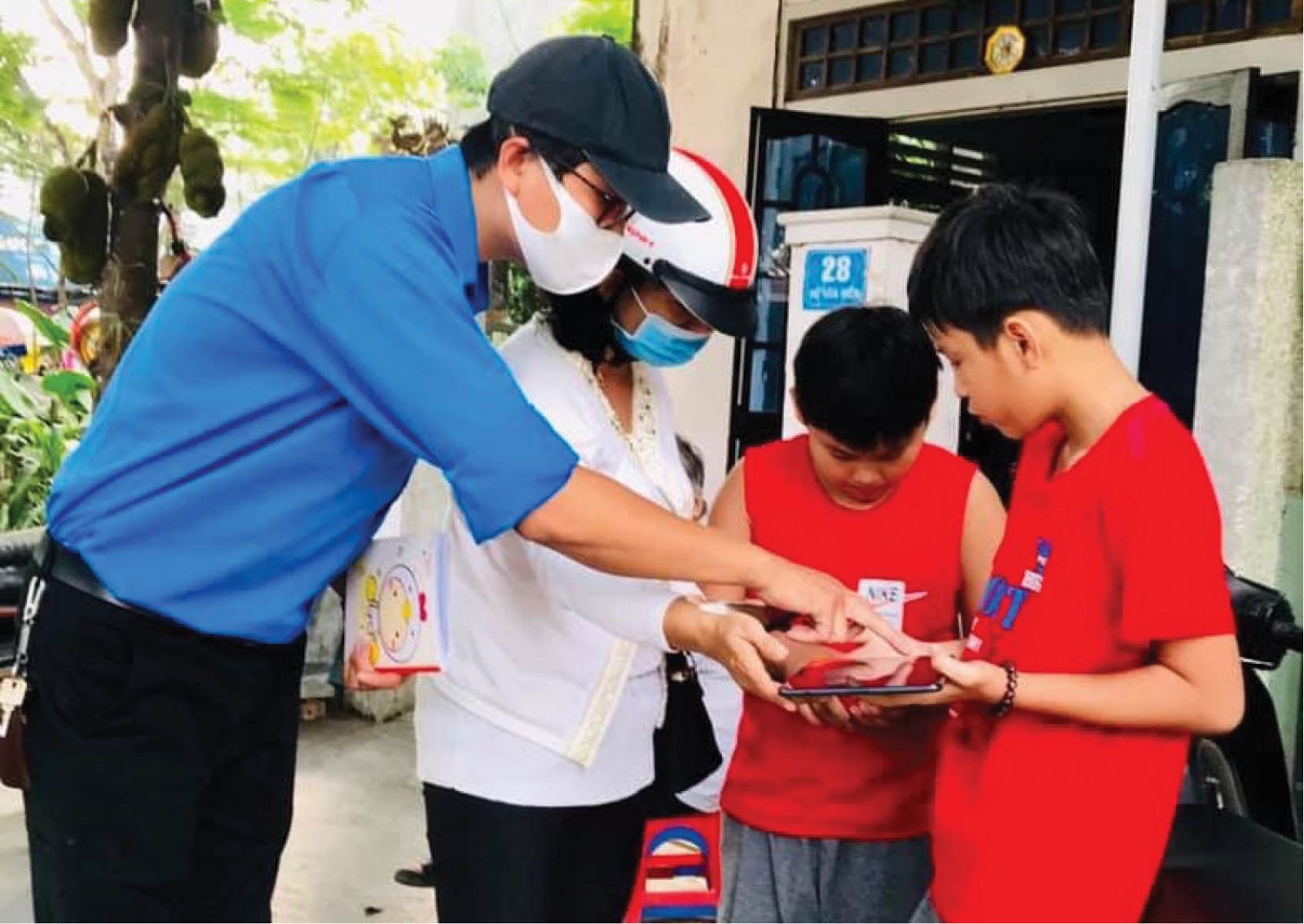 Đoàn viên thanh niên phường Kim Long (TP. Huế) hướng dẫn người dân khai báo y tế