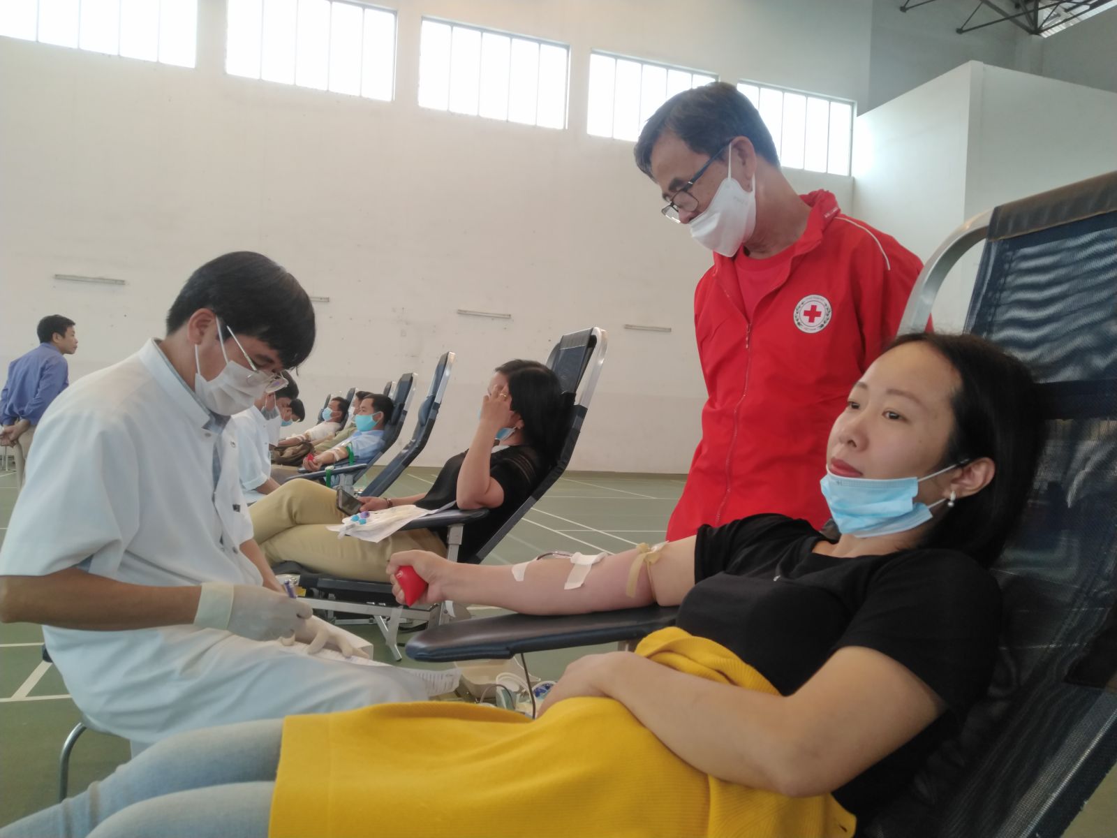 Ban tổ chức cũng bố trí ngồi giãn cách và khai báo y tế trước khi vào khu vực hiến máu để đảm bảo các yếu tố phòng dịch an toàn. Ngày Hội hiến máu lần này có rất nhiều thành phần như cán bộ, công chức, viên chức, lực lượng vũ trang, dân quân tự vệ, nông dân...