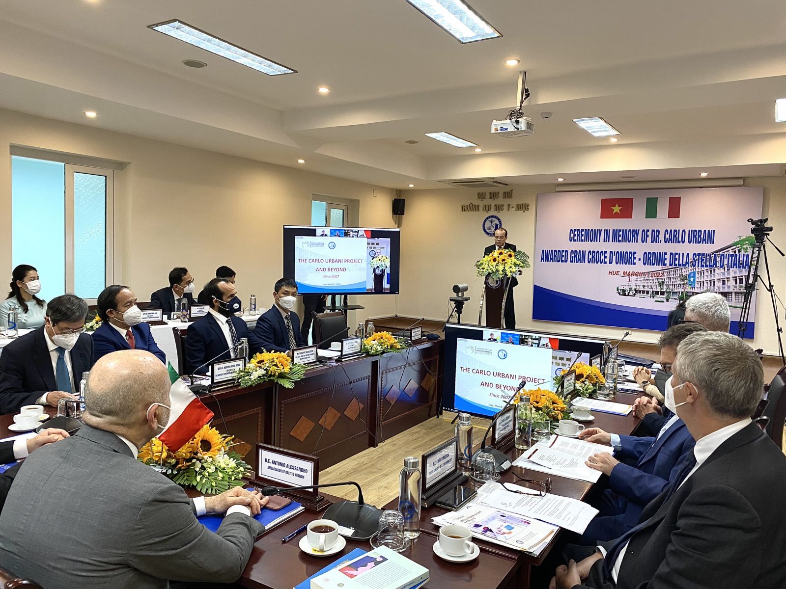 Tham dự buổi lễ, về phía Chính phủ Ý có ông Antonio Alessandro, Đại sứ nước Cộng hòa Ý tại Việt Nam, lãnh đạo Trường đại học Y - Dược, Đại học Huế. Tham dự trực tuyến có đại diện Tổ chức Y tế thế giới và phu nhân của cố bác sĩ Carlo Urbani.