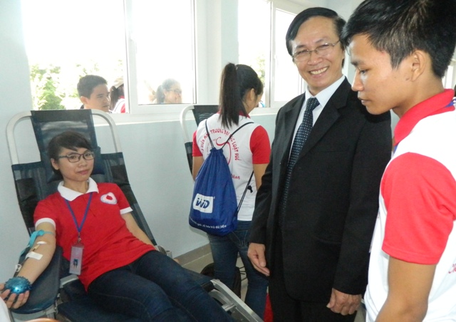 Ông Phan Bình, Trưởng đại diện Prudential khu vực miền Trung 1 động viên các tình nguyện viên hiến máu