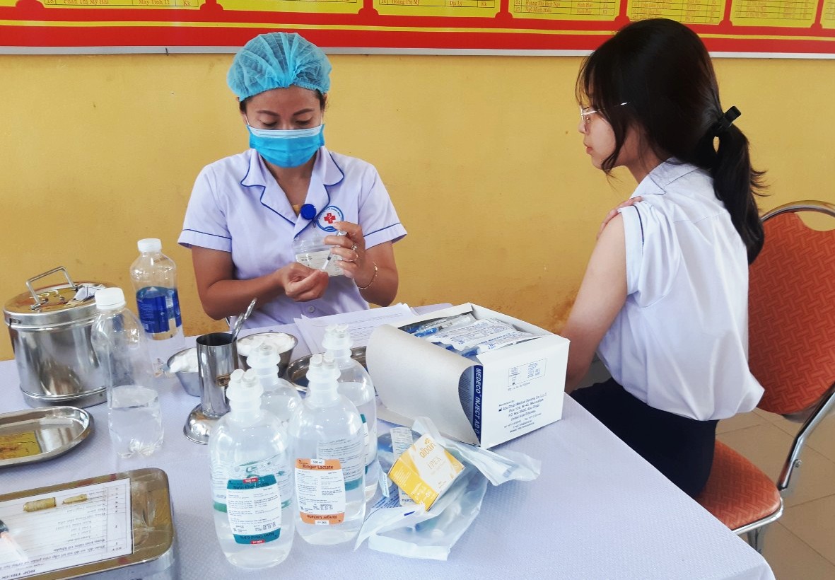 Nhân viên y tế tiêm vắc xin phòng chống COVID-19 cho học sinh