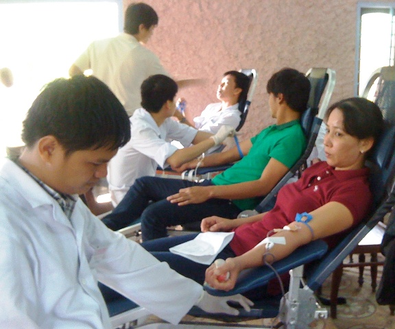 Sáng 18/11, Hội chữ thập đỏ huyện phối hợp với Trung tâm truyền máu khu vực miền Trung tổ chức hiến máu tình nguyện đợt IV - 2014.